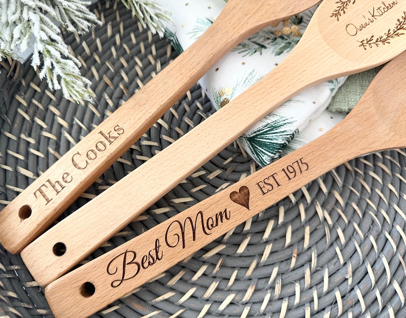 Customize your cooking experience with our personalized wooden spoons. These cooking utensils make fantastic gifts for various occasions, including Mother's Day and for beloved grandmas. They're also a great addition to chili cookouts and serve as personalized gifts for moms.