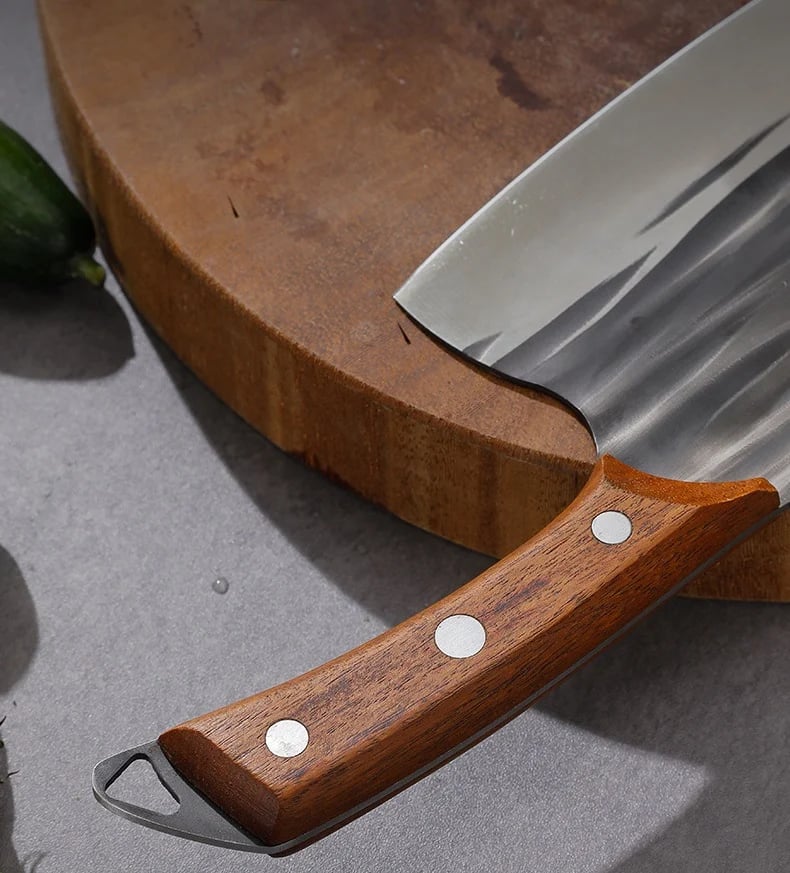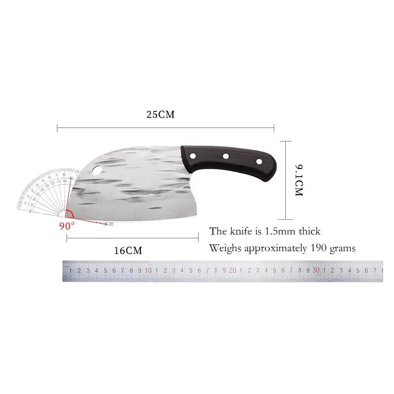 🥩Versatility: This versatile blade will replace virtually every knife in your kitchen and will quickly become your favorite tool to cut, slice and chop nearly anything in front of you. The large blade acts as a useful “scoop” to enhance your performance in the kitchen. Feel confident knowing you have a multifunctional cutting tool to handle any job.