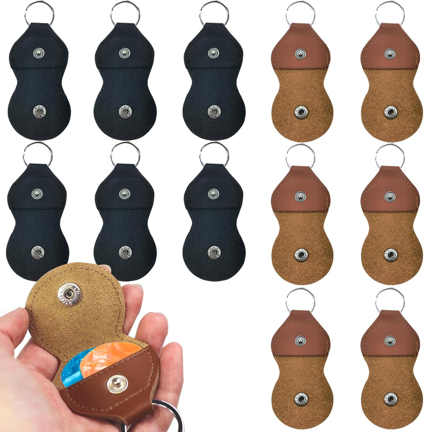 2 PCS Guitar Picks Case Guitar Picks Holder Leather with Keyring Guitar Plectrums Bag with10 Pcs Guitar Picks
