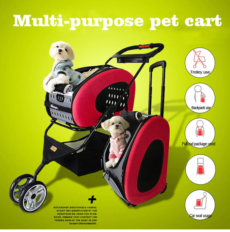 Pet Stroller Carrier for Dogs Detachable Baby Stroller Dog Pull Cart Double Layer Lightweight Four Wheel Shock Absorption